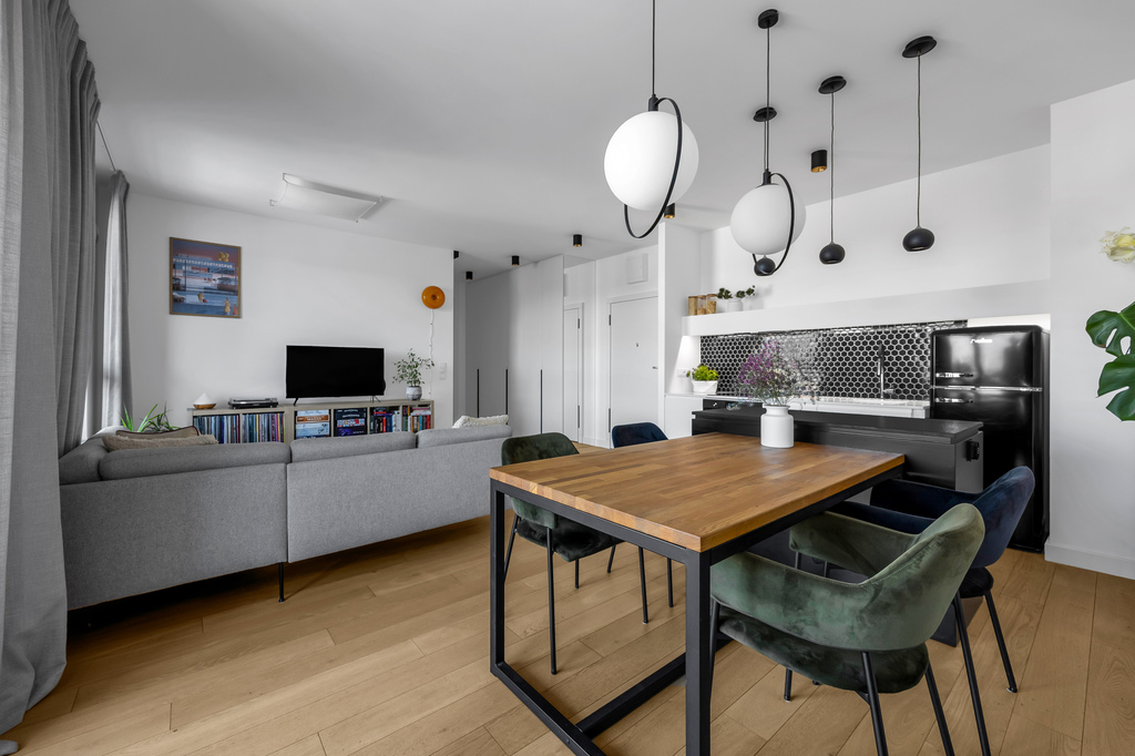 • 2 pokoje: salon z aneksem kuchennym oraz sypialnia