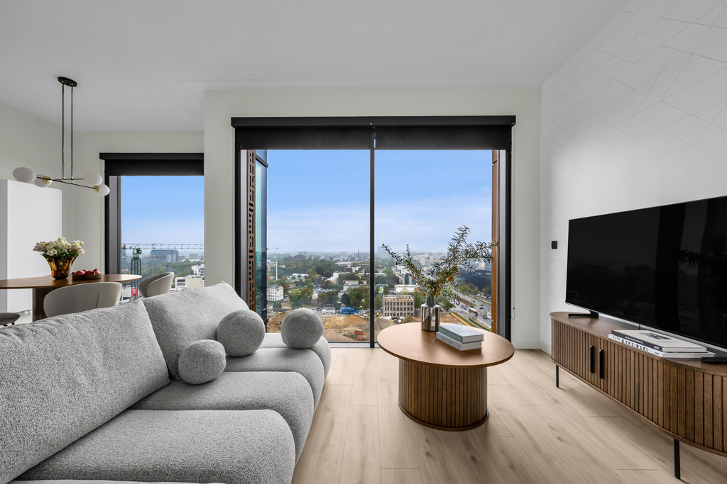 Nowoczesny apartament z widokiem z 20 piętra, 80 m2, 3 pokoje, Towarowa Towers, Wola.