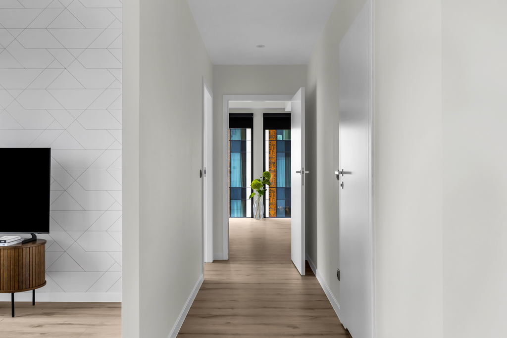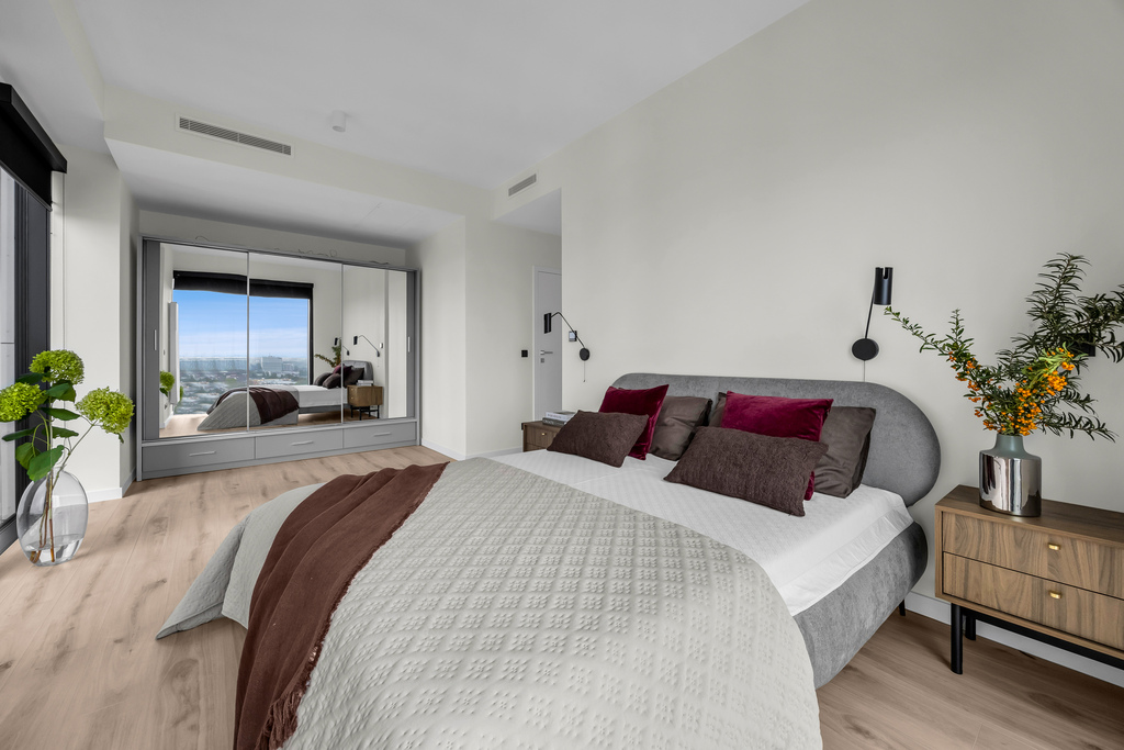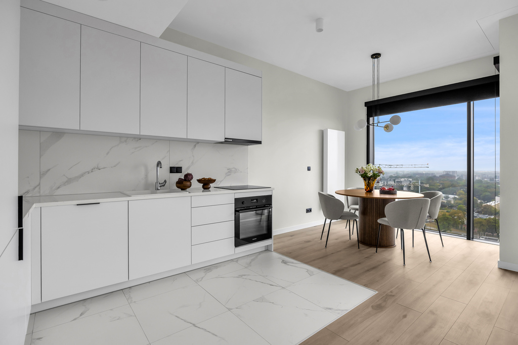 - located on the 20th floor of a 29-storey building, the apartment offers 80 m2 of living space including: