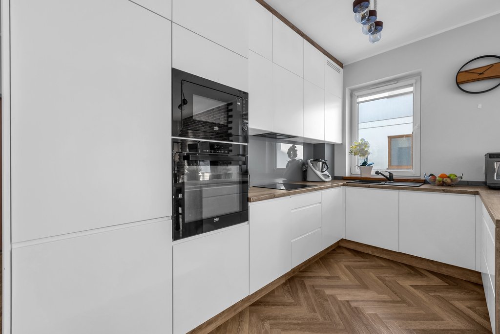 - kuchnia z zabudową kuchenną na wymiar, w pełni wyposażona w osprzęt agd