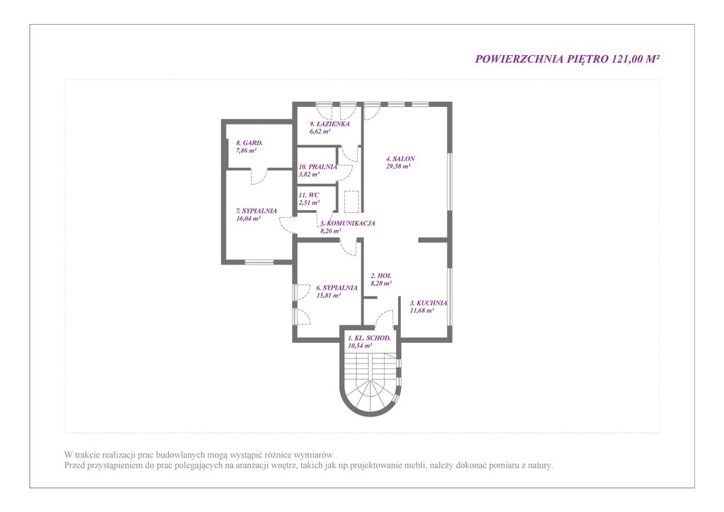 Rozkład pomieszczeń: dom ma powierzchnię całkowitą ok. 550m2 i składa się z 2 części: