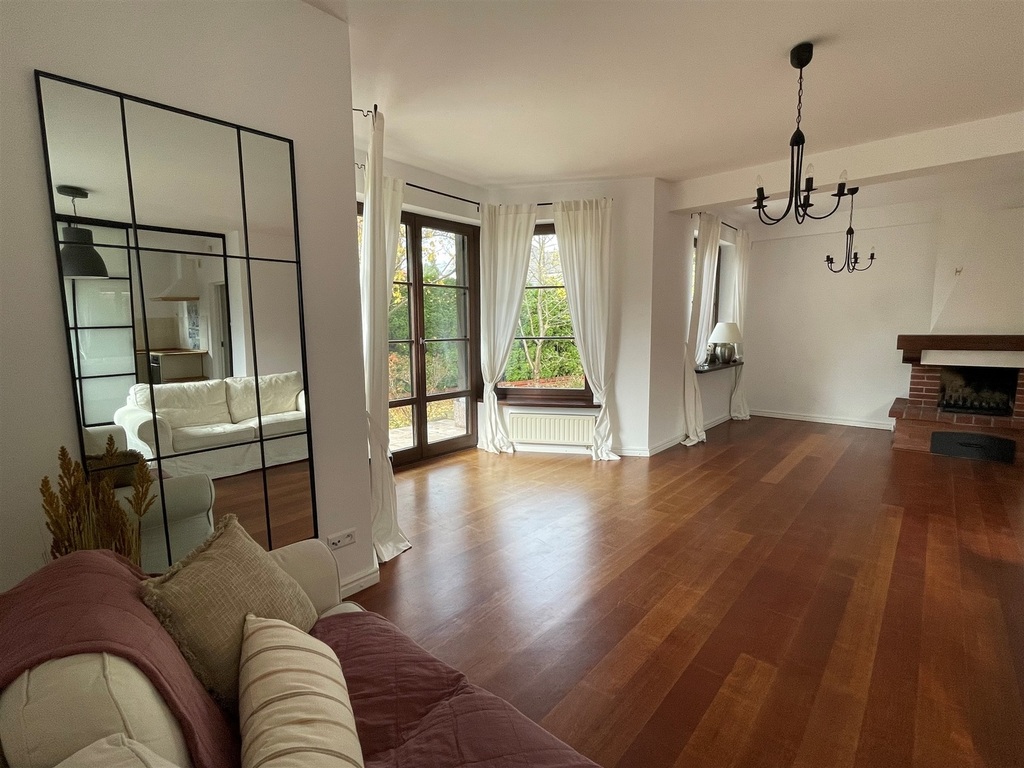 Prestiżowe sąsiedztwo - najbliższe otoczenie stanowią jedno i wielorodzinne wille oraz kilka ambasad. W odległości 12 minut samochodem znajduje się centrum handlowe Sadyba Best Mall, a około 40 minut komunikacją miejską zajmuje dojazd do centrum Warszawy. Niewątpliwą zaletą tej nieruchomości jest poczucie ciszy i spokoju.